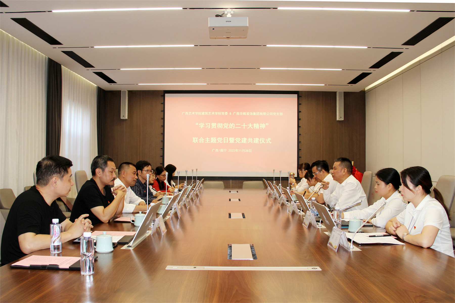 2022年11月28日,廣西藝術(shù)學(xué)院建筑藝術(shù)學(xué)院黨委與廣西華輝裝飾集團(tuán)有限公司黨支部,開展“學(xué)習(xí)貫徹黨的二十大精神”聯(lián)合主題黨日暨黨建共建儀式;同時(shí),廣西藝術(shù)學(xué)院建筑藝術(shù)學(xué)院與廣西華輝裝飾集團(tuán)有限公司,舉行了“聯(lián)合共建校外實(shí)踐教育基地”揭牌儀式。