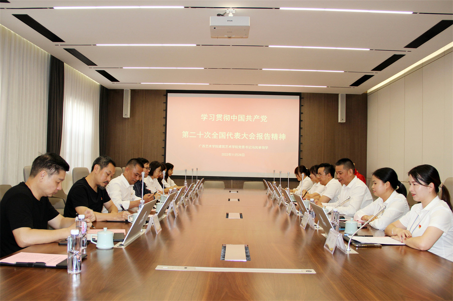 廣西藝術(shù)學(xué)院建筑藝術(shù)學(xué)院黨委書記馮鳳舉領(lǐng)學(xué)了二十大精神學(xué)習(xí)。與會(huì)全體黨員均表示,將切實(shí)把思想和行動(dòng)統(tǒng)一到深入學(xué)習(xí)貫徹黨的二十大精神上來,把堅(jiān)定擁護(hù)‘兩個(gè)確立’、堅(jiān)決做到‘兩個(gè)維護(hù)’落實(shí)到日常工作,立足本職崗位,實(shí)干擔(dān)當(dāng)。