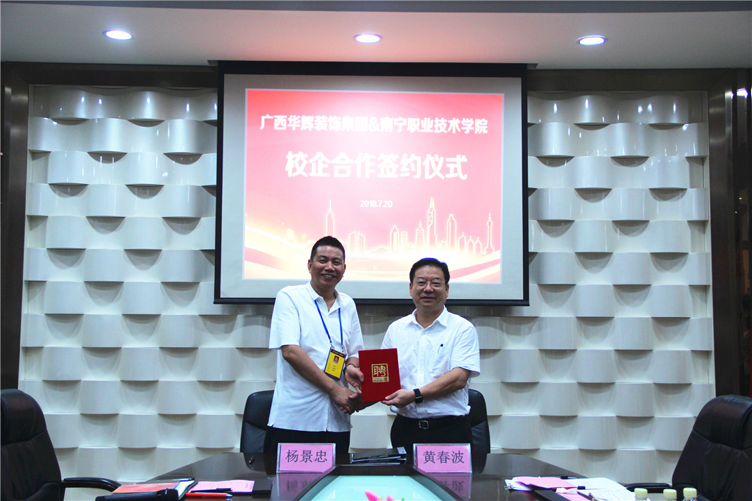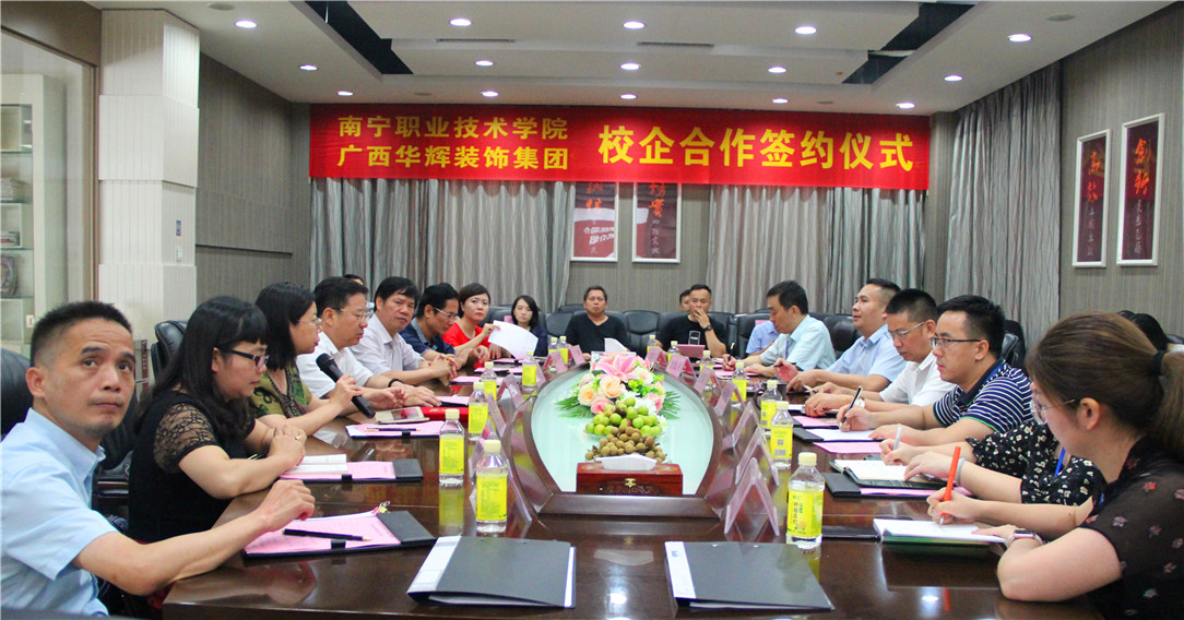 7月20日,在廣西建筑裝飾行業(yè)協(xié)會的有力推動下,南寧職業(yè)技術(shù)學(xué)院與廣西華輝裝飾集團有限公司簽訂合作協(xié)議,深度推動“產(chǎn)學(xué)研”校企合作。