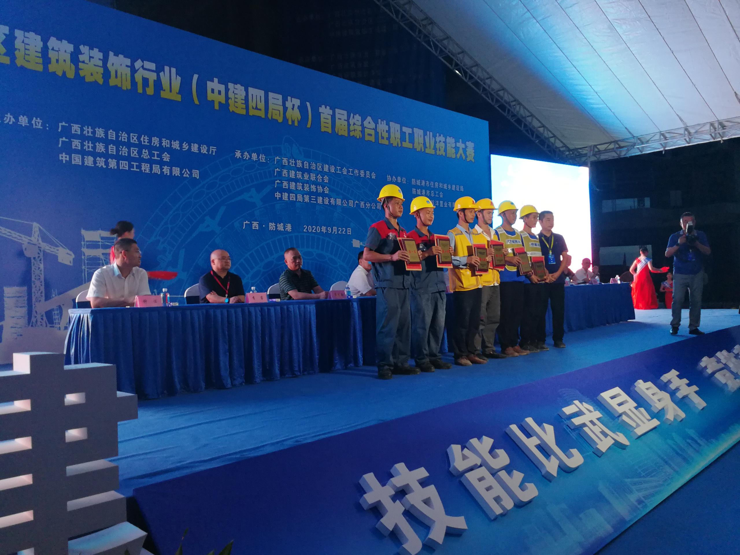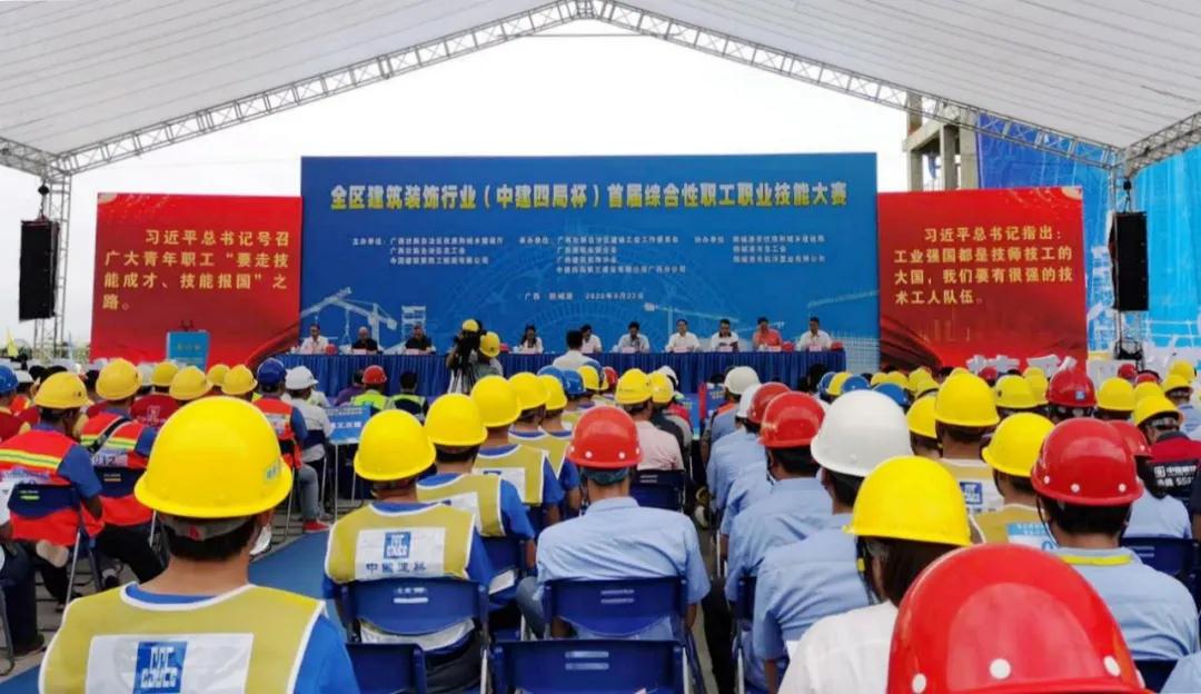 2020年9月22日,全區(qū)建筑裝飾行業(yè)(“中建四局”杯)首屆綜合性職工職業(yè)技能大賽在防城港白浪灘·航洋都市里項目建設工地擂響賽鼓,拉開了建筑農民工學習施工專業(yè)知識、提高職業(yè)技能的序幕。