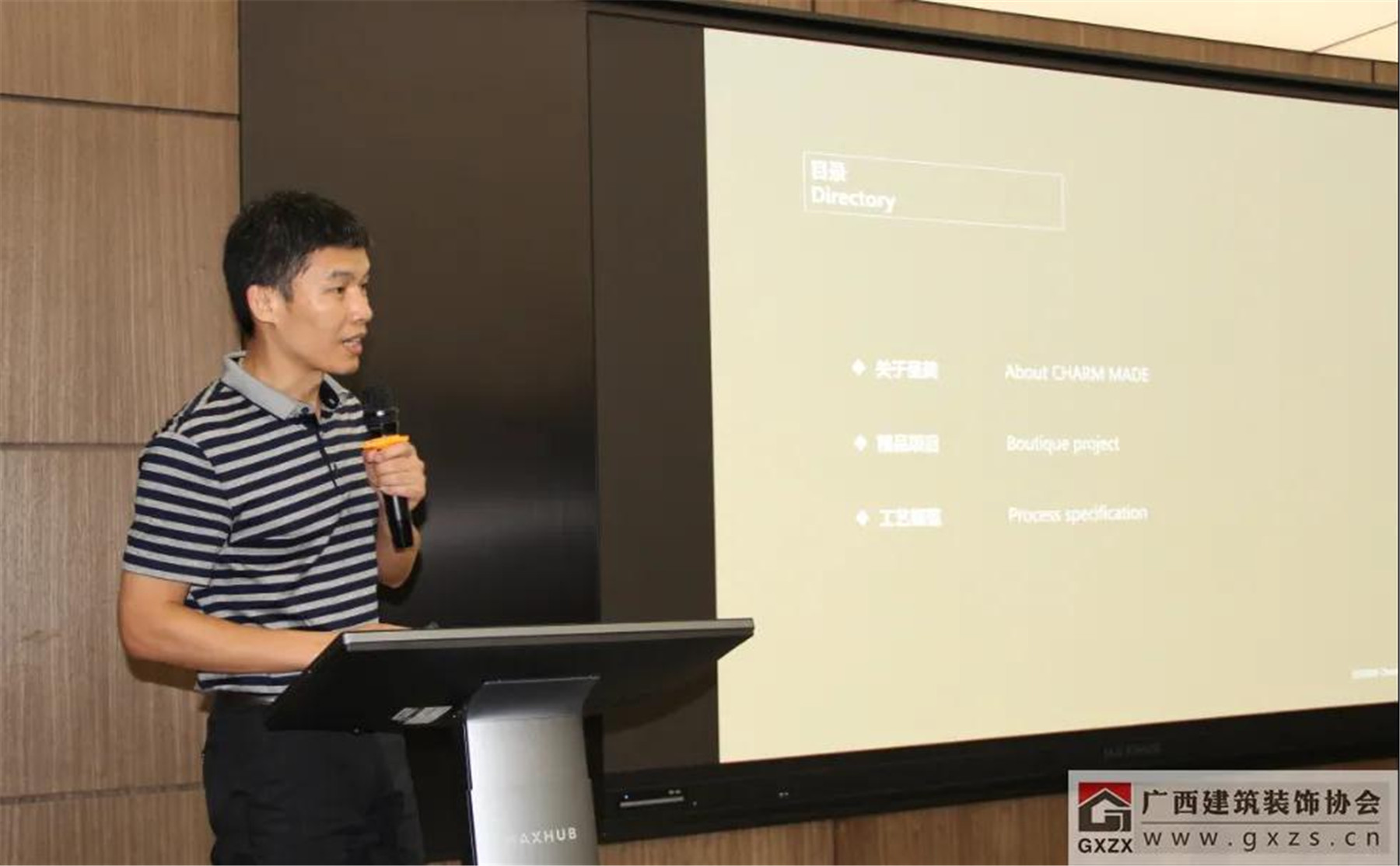 協(xié)會(huì)副會(huì)長(zhǎng)、廣西華藍(lán)建筑裝飾工程有限公司董事長(zhǎng)朱建宇進(jìn)行了“以設(shè)計(jì)引領(lǐng)建筑裝飾企業(yè)創(chuàng)新發(fā)展”的分享。