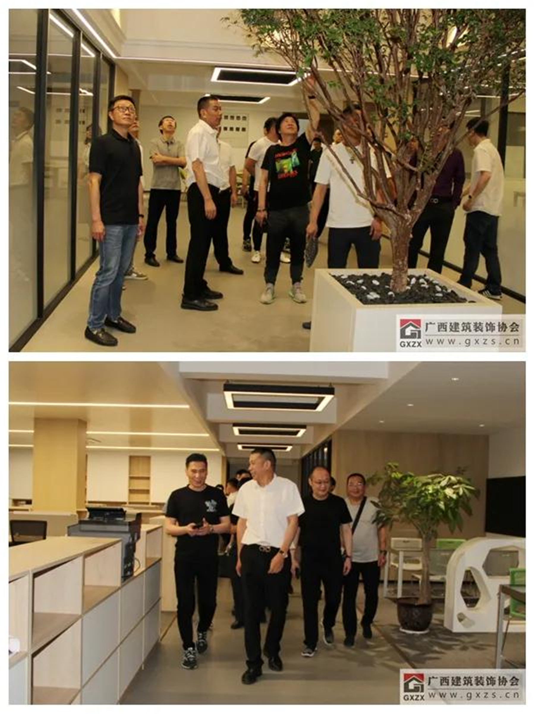 會(huì)后,參會(huì)嘉賓在楊景忠董事長(zhǎng)的帶領(lǐng)下,參觀了廣西華輝裝飾集團(tuán)有限公司新改造升級(jí)的辦公場(chǎng)地以及裝配式工廠化生產(chǎn)基地。