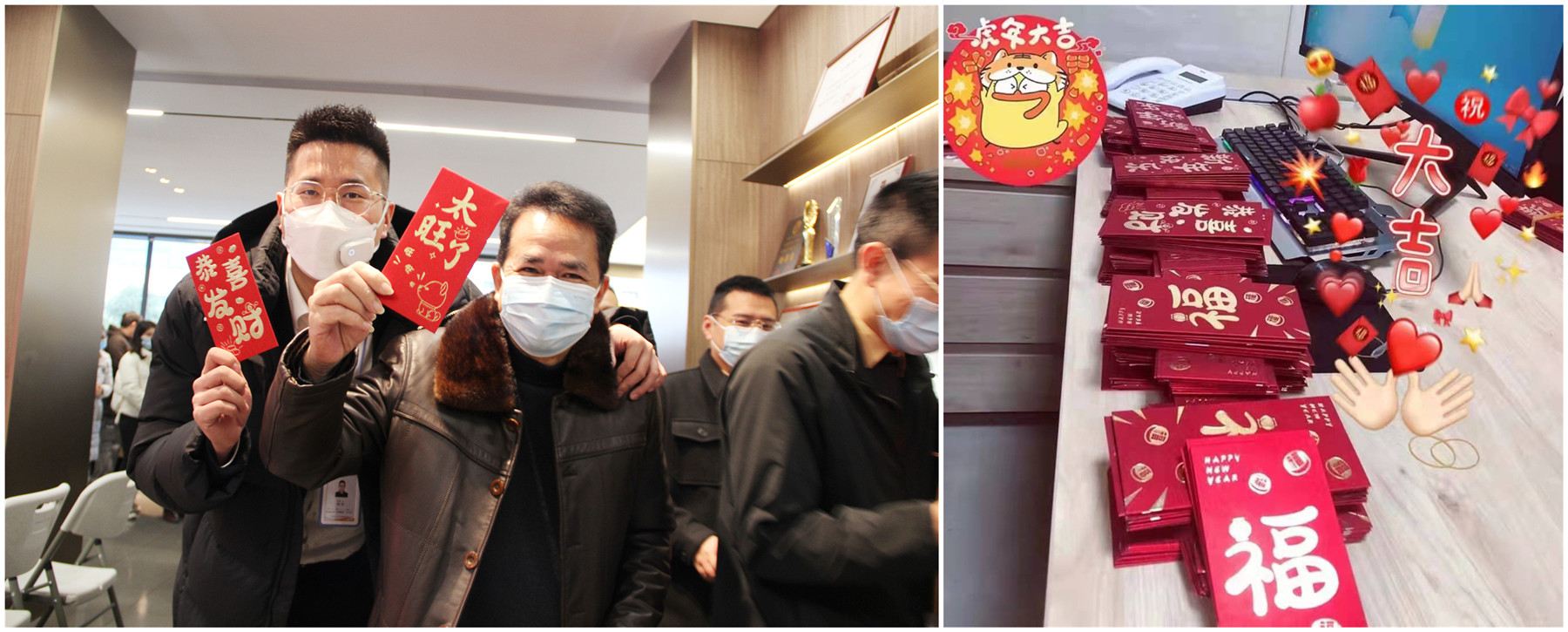 集團(tuán)董事長(zhǎng)楊景忠先生為華輝家人送來了新春祝福,希望所有華輝人帶著新年的蓬勃朝氣,邁上新的征程!楊景忠董事長(zhǎng)及袁婧惠女士為華輝家人們派發(fā)新春紅包,送上新一年的鴻運(yùn)!