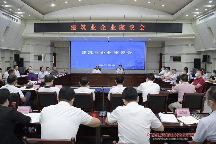 2022年8月19日,自治區(qū)住房城鄉(xiāng)建設廳召開建筑業(yè)企業(yè)座談會,深入貫徹落實“疫情要防住、經(jīng)濟要穩(wěn)住、發(fā)展要安全”重要要求,全面落實國家、自治區(qū)穩(wěn)住經(jīng)濟決策部署,以及2022年全區(qū)年中工作會議精神,了解全區(qū)建筑業(yè)企業(yè)發(fā)展情況,更好更快促進全區(qū)建筑業(yè)高質量發(fā)展。自治區(qū)住房城鄉(xiāng)建設廳黨組書記、廳長唐標文出席會議并講話,自治區(qū)住房城鄉(xiāng)建設廳黨組成員、副廳長潘國雄主持會議。
