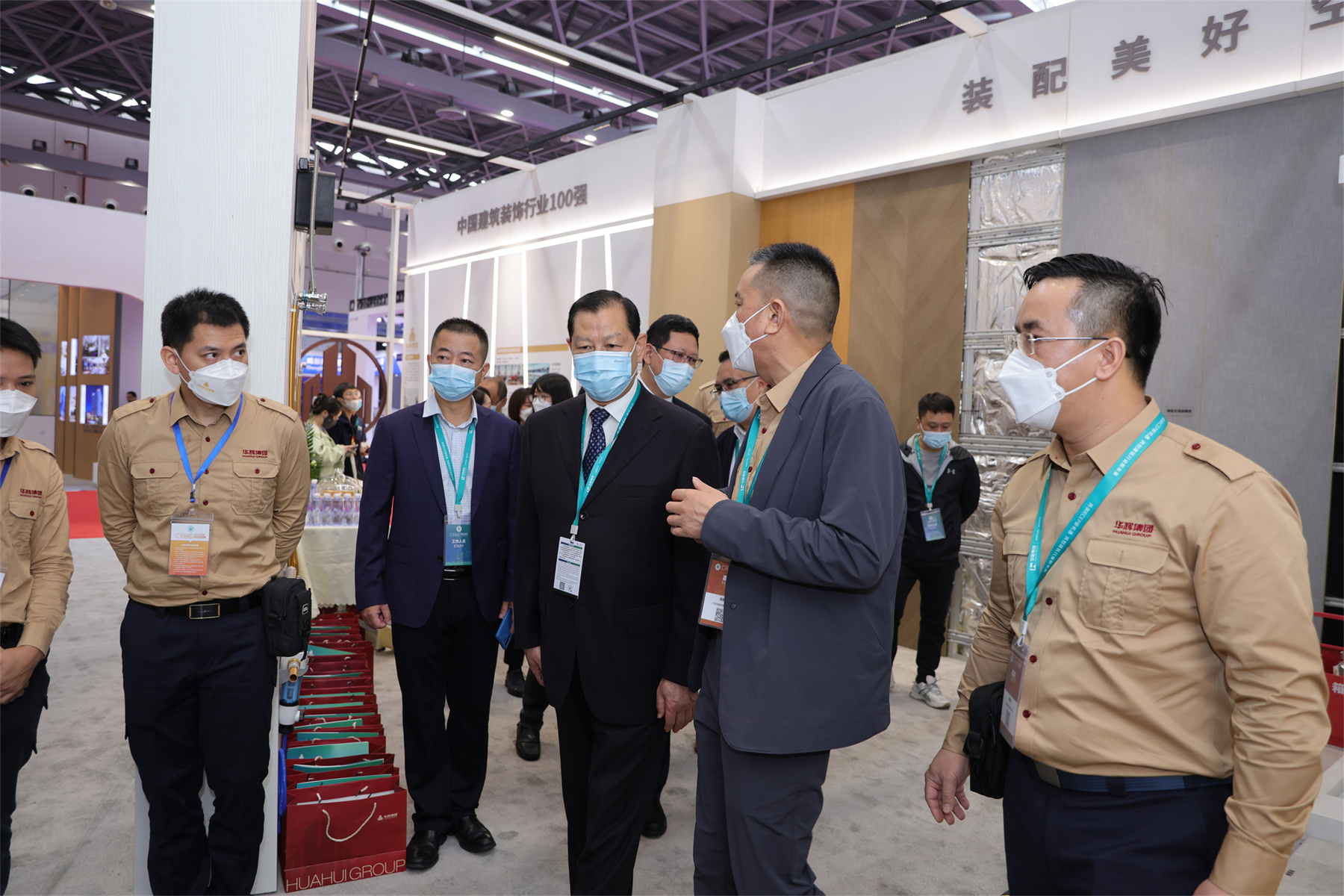 建博會首日,中國建筑裝飾協(xié)會會長王中奇、廣西建筑裝飾協(xié)會會長龐耀國、南寧市住房和城鄉(xiāng)建設局副局長黃贊等領導蒞臨華輝展位,深入了解華輝的產(chǎn)品、專利技術及應用實踐等情況,對公司裝配式裝修產(chǎn)品體系給予了高度贊譽!