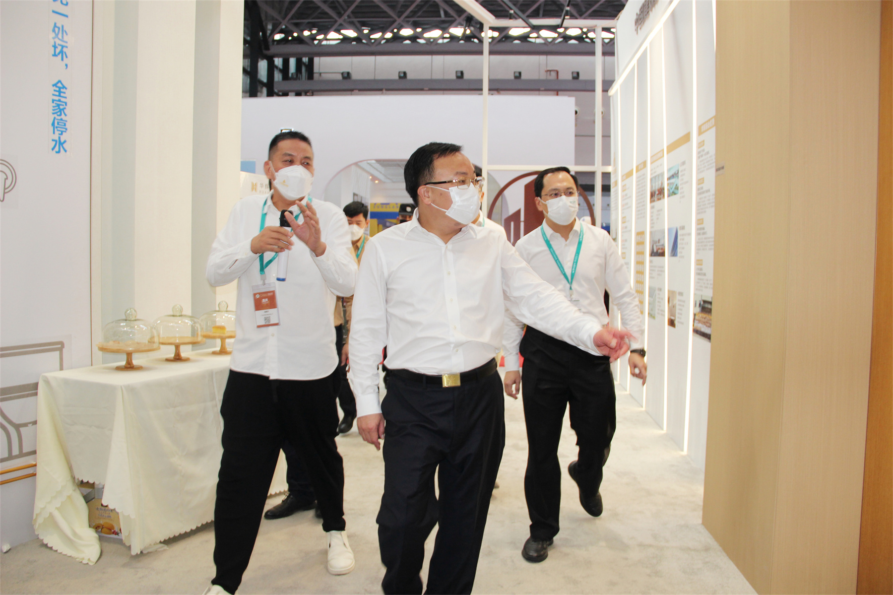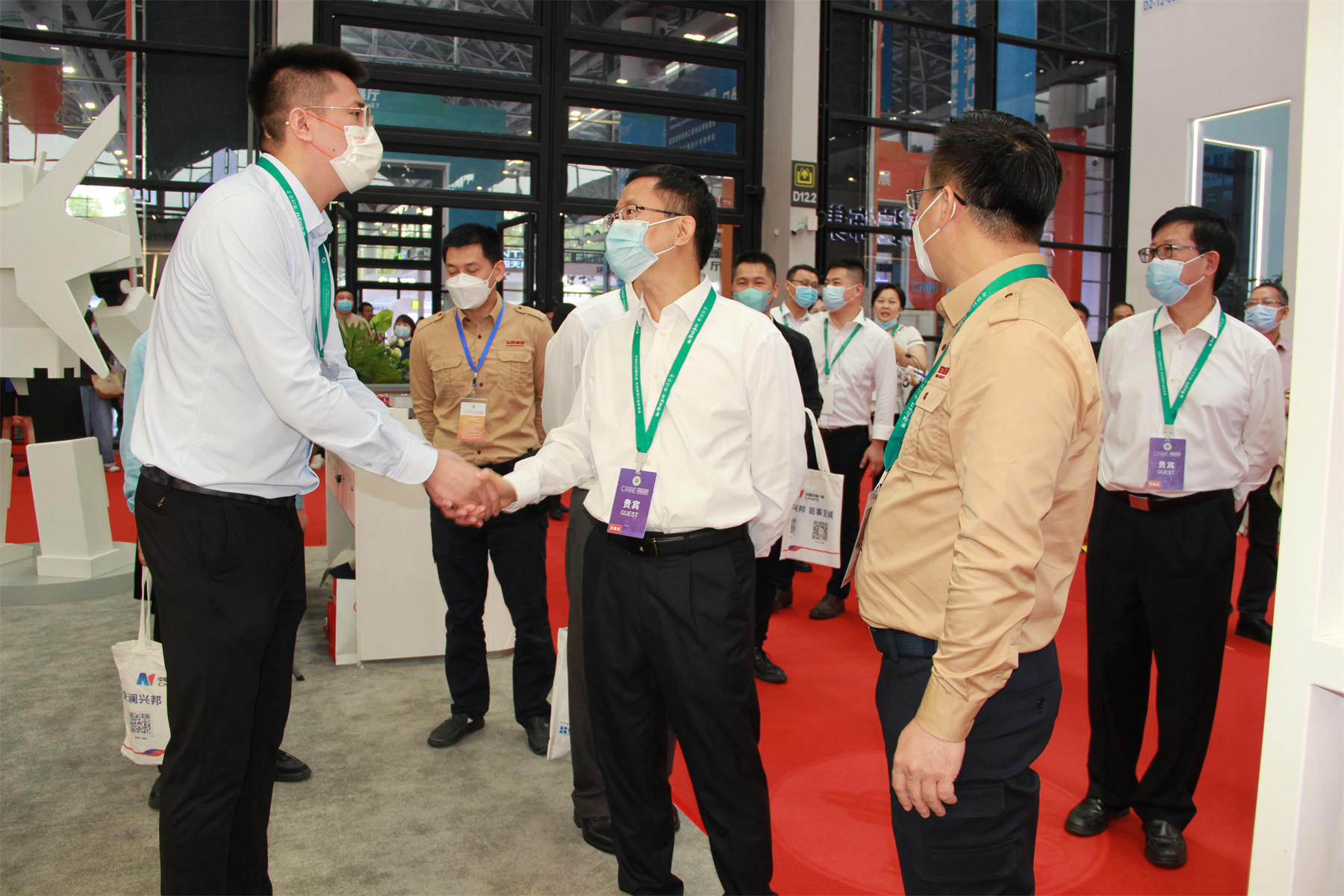2022年11月26日,2022中國—東盟建筑業(yè)暨高品質(zhì)人居環(huán)境博覽會第二天,自治區(qū)住房城鄉(xiāng)建設廳副廳長潘國雄蒞臨華輝展廳指導。