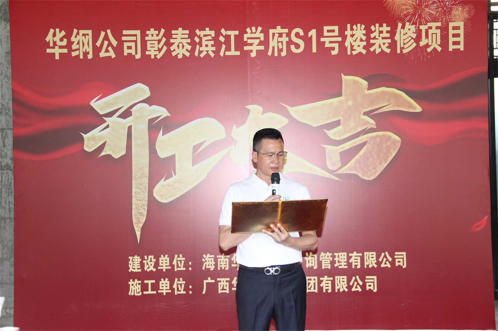 華輝集團總裁楊彬也在開工儀式上發(fā)表了致辭。他首先對江南紙業(yè)的信任與支持表示衷心的感謝,并強調(diào):“我們深知此次裝修工程的重要性,它不僅關(guān)乎江南紙業(yè)的形象展示,更是其企業(yè)文化與品牌精神的體現(xiàn)。華輝團隊將全力以赴,以高標準、嚴要求、精工藝,確保裝修工程的每一個環(huán)節(jié)都達到甚至超越客戶的期望。為江南紙業(yè)的員工營造一個舒適、安全、高效的工作環(huán)境。