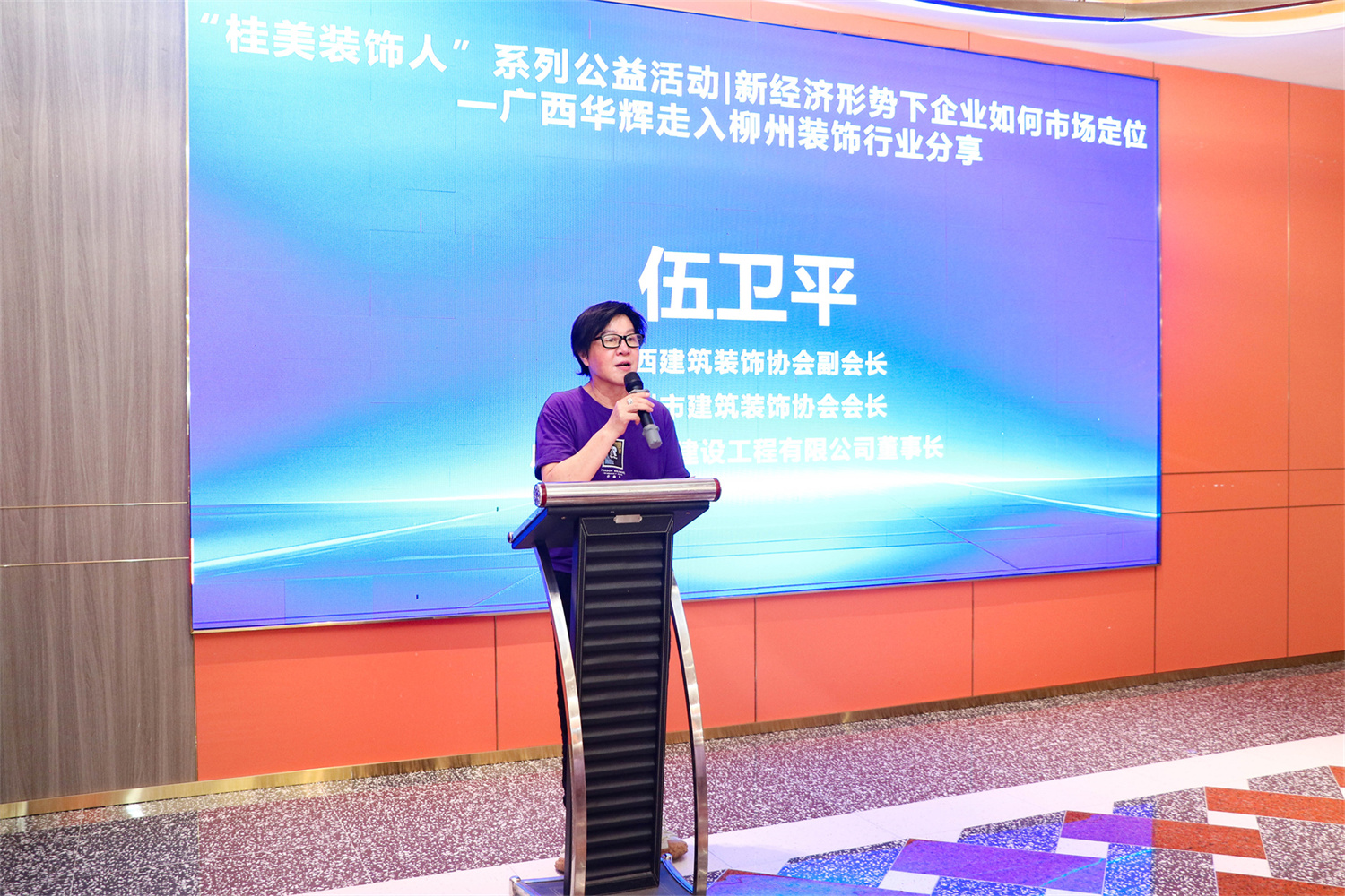 協(xié)會(huì)副會(huì)長(zhǎng)、柳州建筑裝飾協(xié)會(huì)會(huì)長(zhǎng)伍衛(wèi)平在致辭中表示,柳州作為廣西重要的工業(yè)城市,近年來(lái)裝飾行業(yè)在城市建設(shè)、民生改善和產(chǎn)業(yè)升級(jí)中發(fā)揮了積極作用。面對(duì)新經(jīng)濟(jì)形勢(shì),柳州裝飾企業(yè)需要在設(shè)計(jì)理念、施工工藝、材料應(yīng)用等方面不斷創(chuàng)新,提升服務(wù)品質(zhì)和市場(chǎng)競(jìng)爭(zhēng)力。他對(duì)廣西建筑裝飾協(xié)會(huì)為柳州行業(yè)搭建了寶貴的交流平臺(tái)表示感謝,希望通過(guò)本次活動(dòng)促進(jìn)柳州企業(yè)與區(qū)內(nèi)外優(yōu)秀裝飾企業(yè)加強(qiáng)合作、互學(xué)互鑒,共同推動(dòng)柳州裝飾行業(yè)邁向高質(zhì)量發(fā)展。
